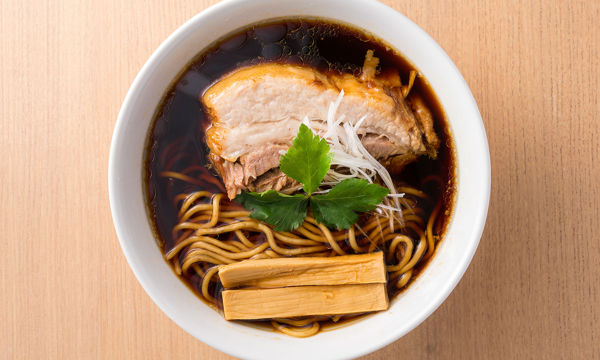 併設の自社製麺所で毎朝製麺した自家製麺は醤油ベースのスープによく絡み、モチモチとしたコシのある食感が特徴です。